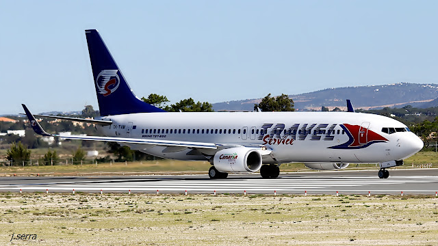 | Faro - Boeing 737.8FN/W (OK-TVM) c/n 37077 - TRAVEL Service - Rep. Checa (chega de Varsóvia/Frédéric Chopin) |