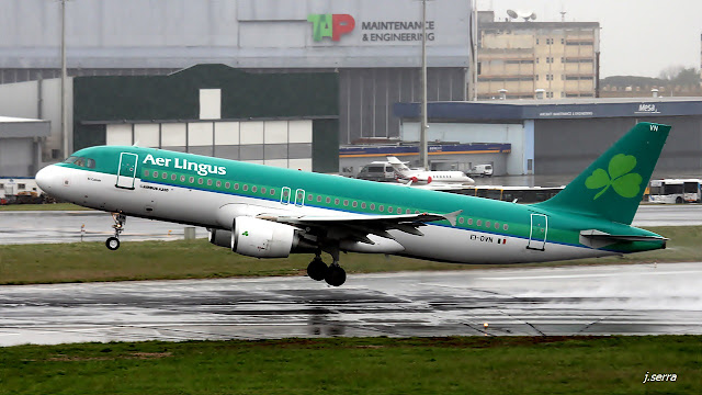 | Airbus A320.214 (EI-EZW) "Rosie Lee" c/n 1983 - Aer Lingus - Irlanda (voo Dublin-Faro ,desviado para Lisboa, descola para Faro depois de melhorarem as condições atmosféricas naquela cidade) |