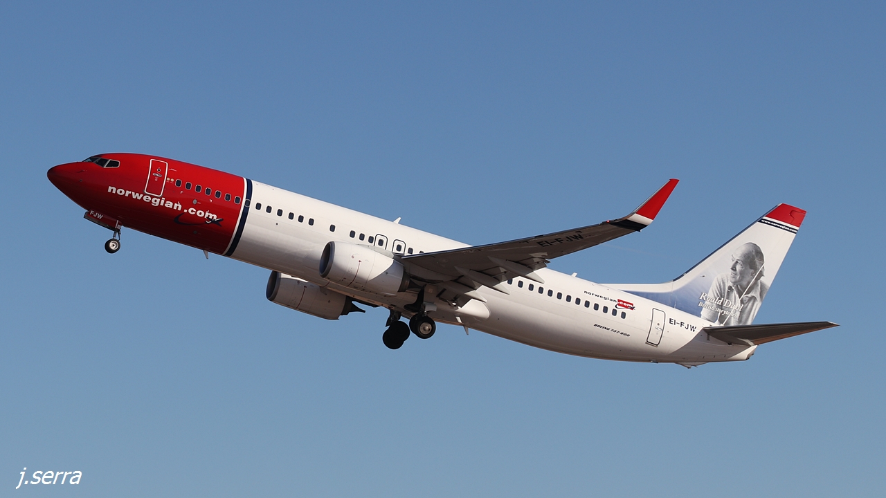 | Boeing 737.8JP/W (EI-FJW) "Roald Dahl" c/n 42286 - norwegian - Noruega (descola para Copenhaga/Kastrup) |