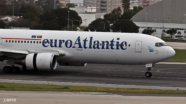 | Boeing 767.36N/ER (CS-TKR) c/n 30854 - euroAtlantic - Portugal (chega de Caracas/Simon Bolívar, via Curaçao/Wilhemstad, a operar para a TAP AIR PORTUGAL) |